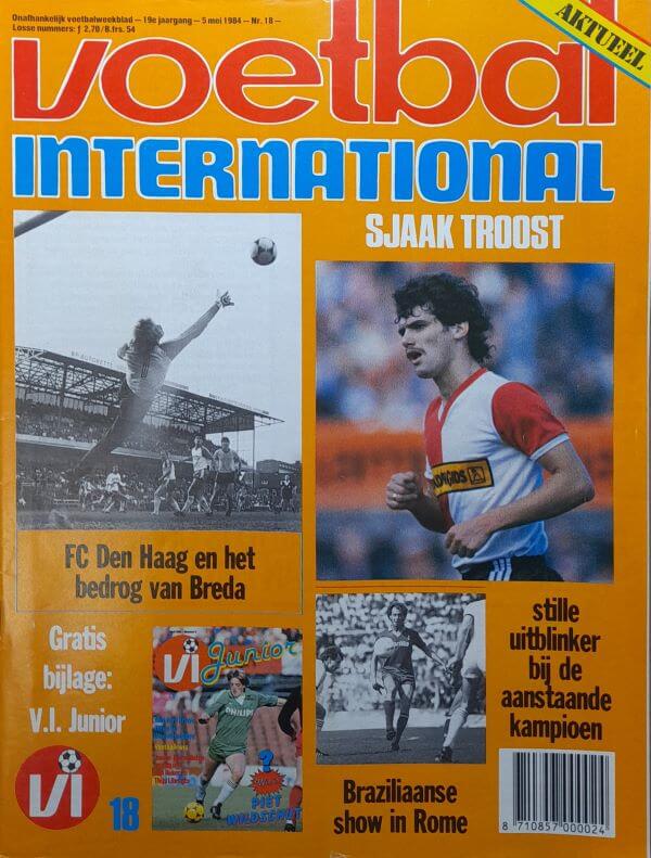 In de oude VI van deze week o.a. NAC – FC Den Haag, de doorbraak van Sjaak Troost, Hennie Meijer in de aanbieding en een poster van Graeme Souness. Verder tref je in de oude Voetbal International van 5 mei 1984 onder meer het volgende aan: