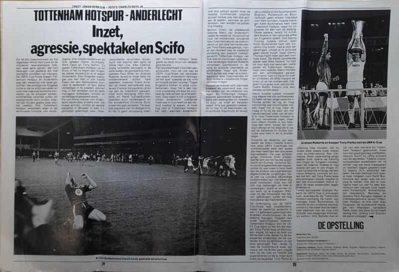 – wedstrijdverslag Tottenham Hotspur – Anderlecht 1-1, Tottenham wint de UEFA-Cup