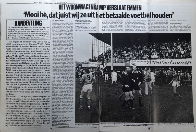 – een prachtig verslag van de wedstrijd Emmen – WKE 1-1, bij winst was Emmen zeker van toetreding tot het betaalde voetbal