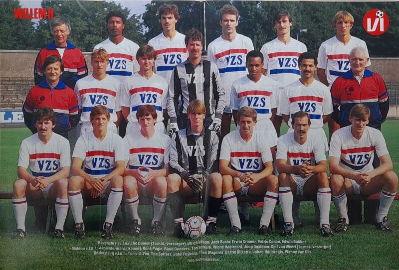 – in het midden een elftalposter in kleur van Willem 2 met Ad Damen, Ulrich Wilson, Jack Busio, Erwin Cramer, Patric Cohen, Edwin Bakker, Jan Notermans, René Pagie, Ruud Donders, Ton Verkerk, Winny Haatrecht, Joop Oostdam, Sjef van Weert, Ton van de Ven, Ton Soffers, John Feskens, Theo Wagener, Gerrie Dijkstra, Johan Huijbregts, Wanny van Gils