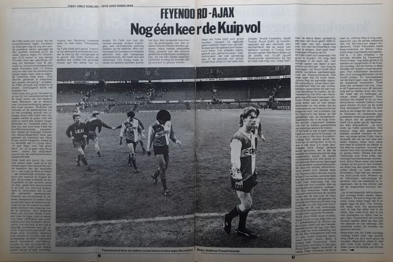 – een week voor de topper tegen Ajax verliest Feyenoord voor de KNVB Beker met 1-2 in eigen huis van Excelsior – een reportage vanuit Rotterdam – Feyenoord – Ajax – “Nog een keer De Kuip vol”