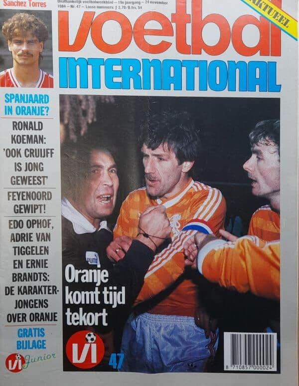 In deze oude VI verliest Nederland van Oostenrijk, Excelsior verslaat Feyenoord in eigen huis, interviews met Ronald Koeman, Huub Smeets, Willy Boessen, Cor Lems en een poster van Volendam. Verder tref je in de oude Voetbal International van 24 november 1984 onder andere de volgende artikelen aan: