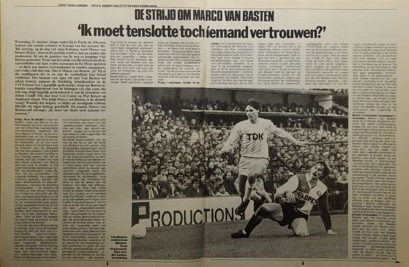 – aan het eind van dit seizoen heeft de 20-jarige Marco van Basten er drie seizoenen op zitten bij Ajax – er dient daarom een nieuwe overeenkomst te worden aangegaan, met welke club dan ook – De strijd om Marco van Basten – “Ik moet tenslotte toch iemand vertrouwen” – een reportage