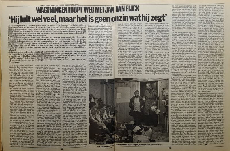 – uit nieuwsgierigheid over de werkwijze van Jan van Eijck bij Wageningen, bracht VI een bezoek aan de club – Wageningen loopt weg met Jan van Eijck – “Hij lult wel veel, maar het is geen onzin wat hij zegt”