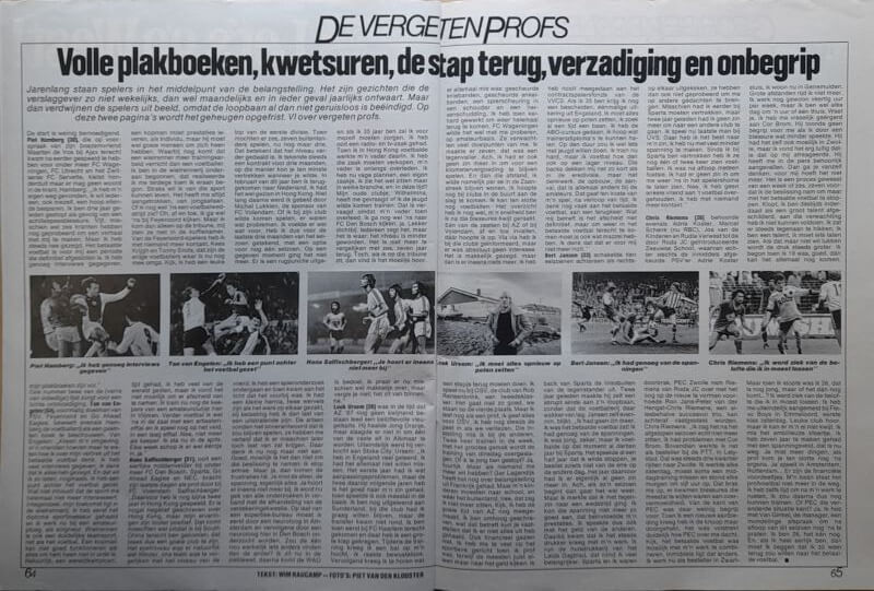 – Jarenlang staan spelers in het middelpunt van de belangstelling – dat houdt een keer op – VI over vergeten profs – met Piet Hamberg, Ton van Engelen, Hans Salfischberger, Loek Ursem, Bert Jansen, Chris Riemens