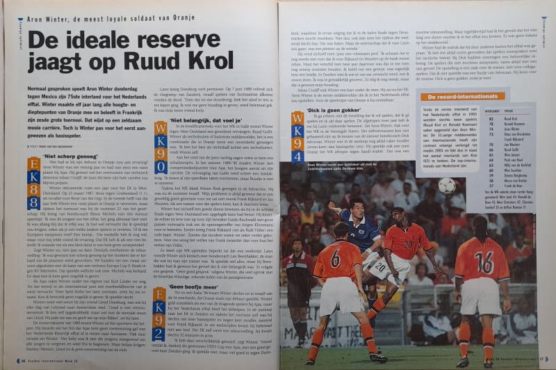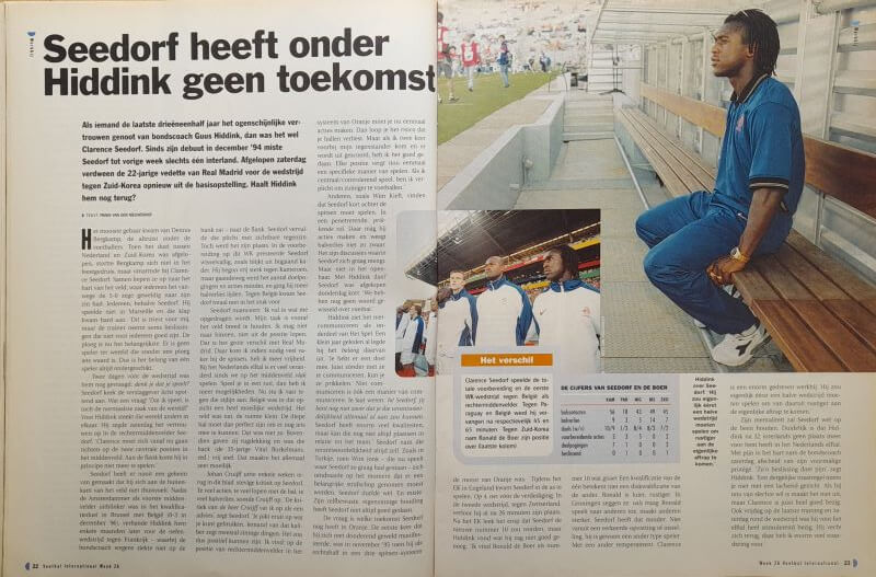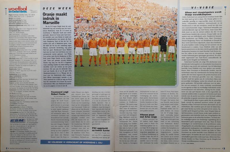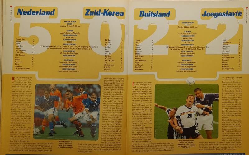 In deze oude VI weet Oranje met 5-0 te winnen van de Zuid-Koreanen op het WK in Frankrijk in 1998. Na de 0-0 tegen de Belgen is dit een mooie opsteker. Verder vind je in de oude Voetbal International van 23 juni 1998 onder andere het volgende:
