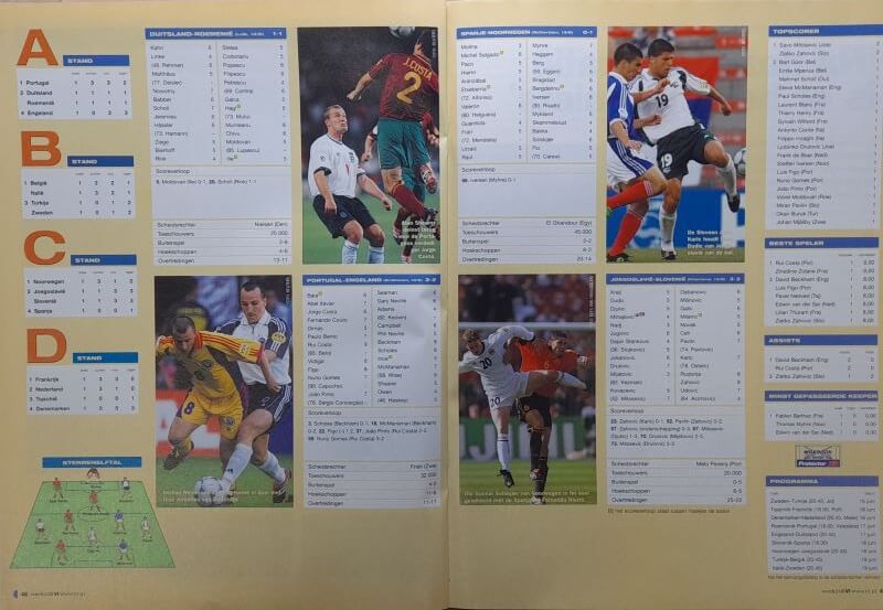 – korte wedstrijdverslagen van Duitsland – Roemenië 1-1, Portugal – Engeland 3-2, Spanje – Noorwegen 0-1 en Joegoslavië – Slovenië 3-3