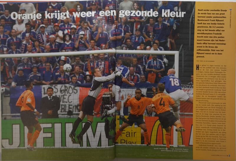 In deze oude VI wint Oranje met 3-2 van Frankrijk en weet daarmee de laatste acht van Euro2000 te bereiken. Nederland moet het in de kwartfinale opnemen tegen Joegoslavië. Verder tref je in de oude Voetbal International van 23 juni 2000 het volgende aan: